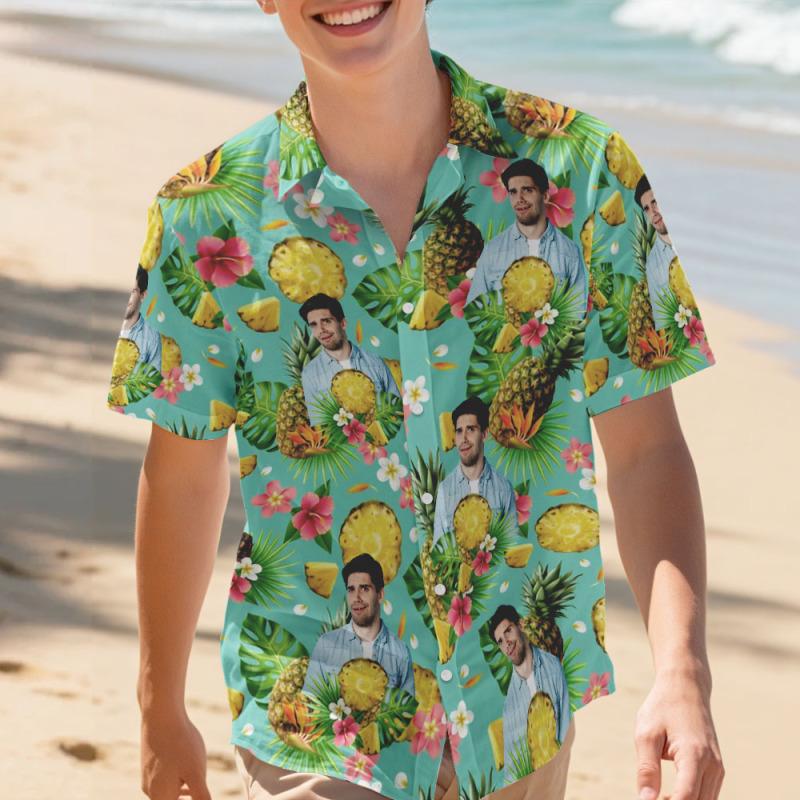 Chemise Hawaïenne Personnalisée Avec Photo Et Motif Tropical. Chemise Hawaïenne Personnalisée Avec Visage.