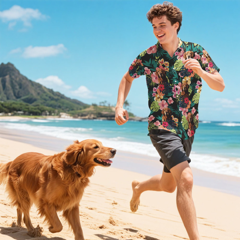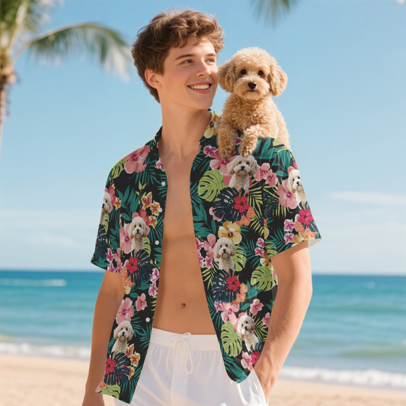 Chemise Hawaïenne Personnalisée Avec Photo De Fleur D'hibiscus Chemise Hawaïenne Personnalisée Avec Photo De Chien Et Chat