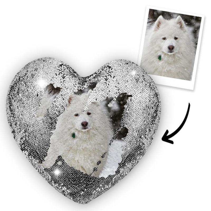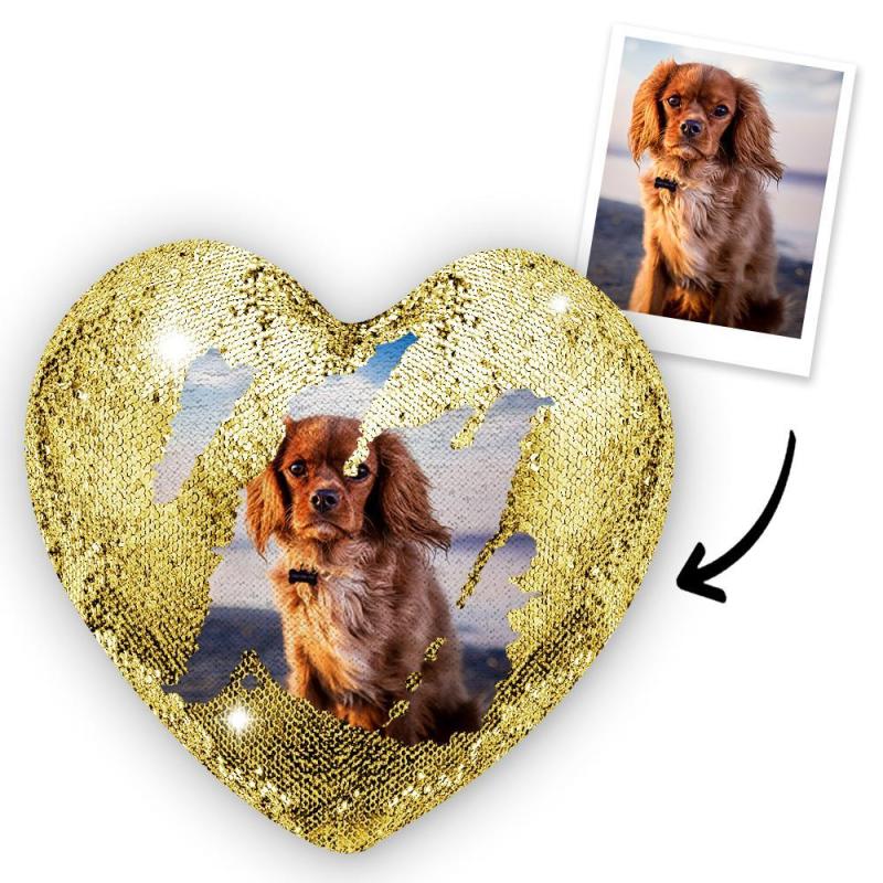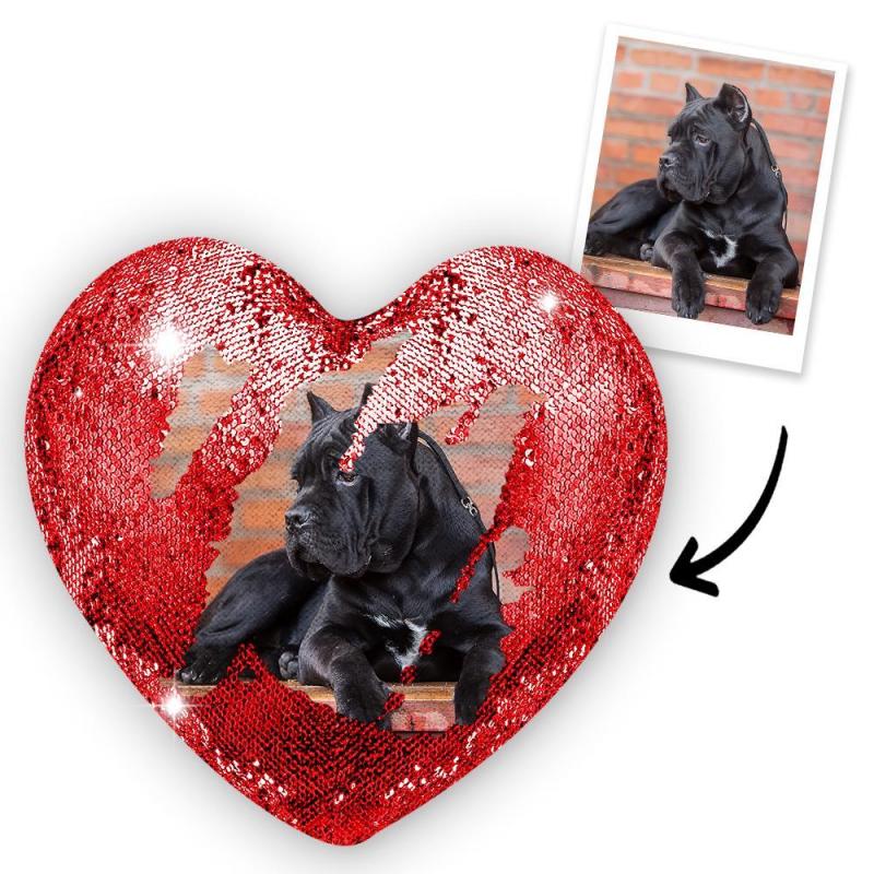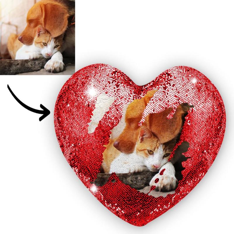 Personnalisé Animal de compagnie Photo Coeur Magie Oreiller de Paillettes