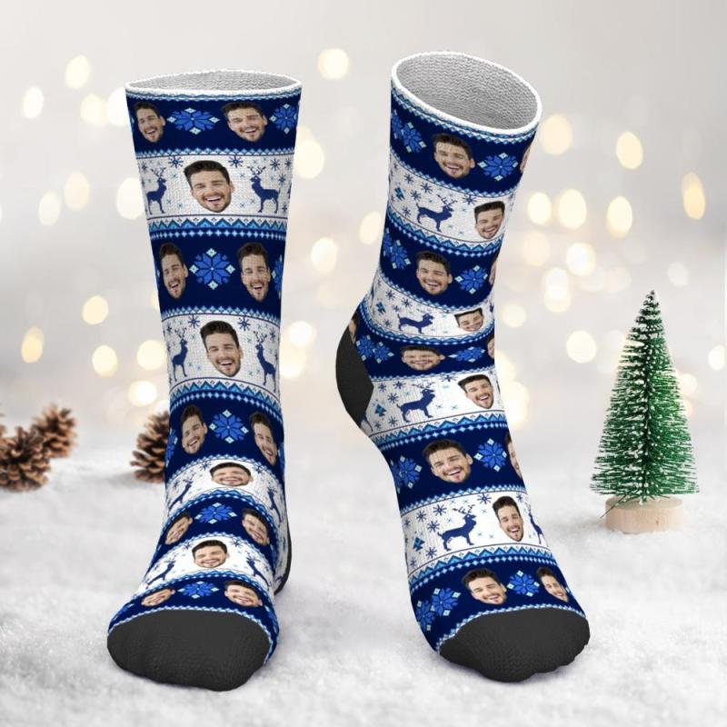 Chaussettes Photo Personnalisées Chaussettes De Noël Chaussettes De Visage De Noël Sur Motif Nordique