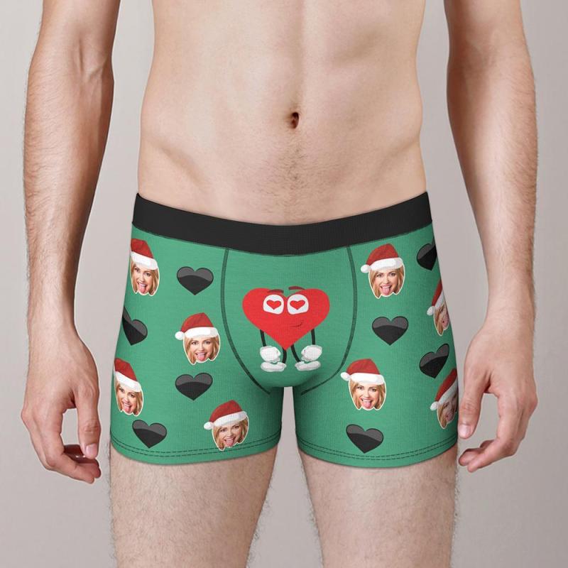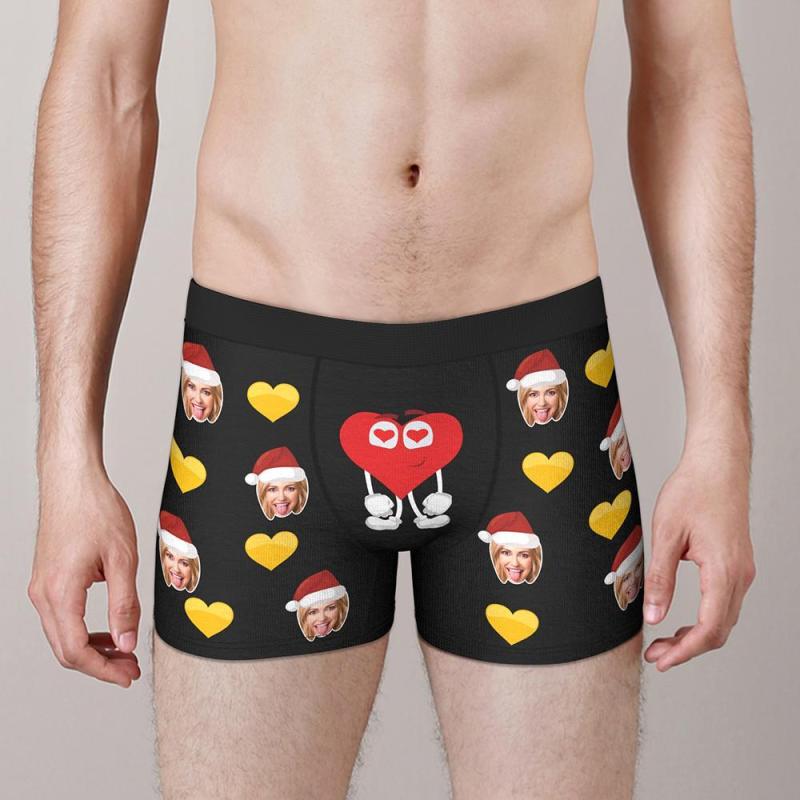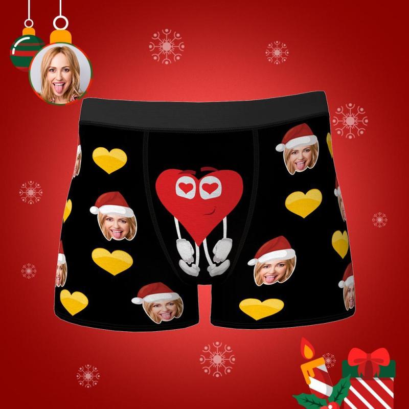 Sous-vêtement photo personnalisé Boxer visage personnalisé Cadeau de Noël pour lui - Battement de coeur