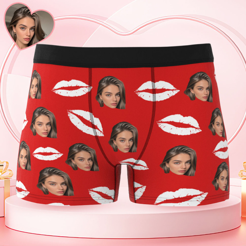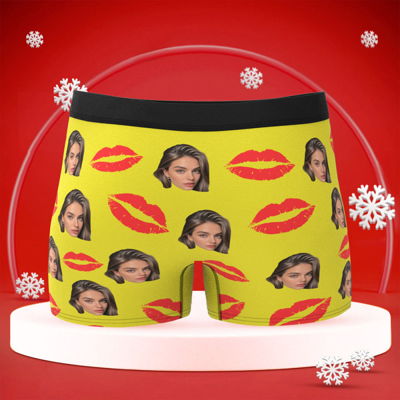 Culotte Photo Personnalisée Avec Lèvres Rouges - Cadeau Sexy Personnalisé Pour Couples - Culotte De Noël Personnalisée Avec Photo