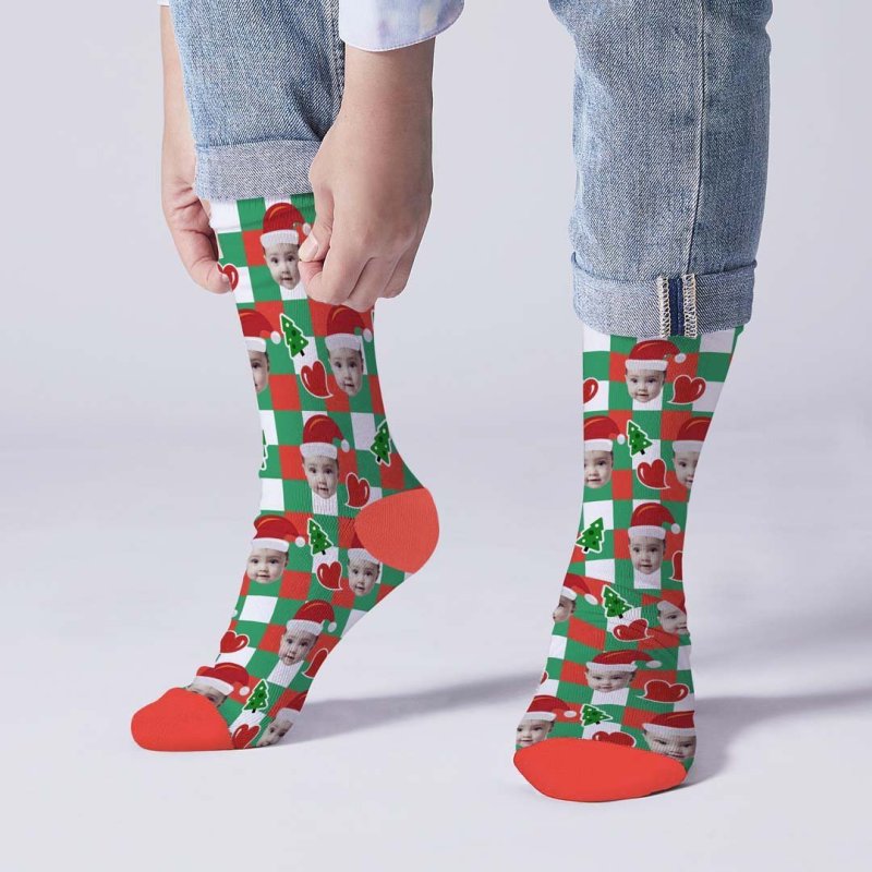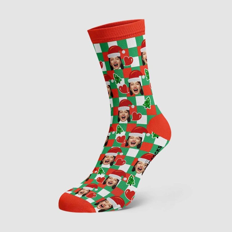 Chapeaux De Père Noël Personnalisés, Chaussettes Faciales, Carreaux De Cœur