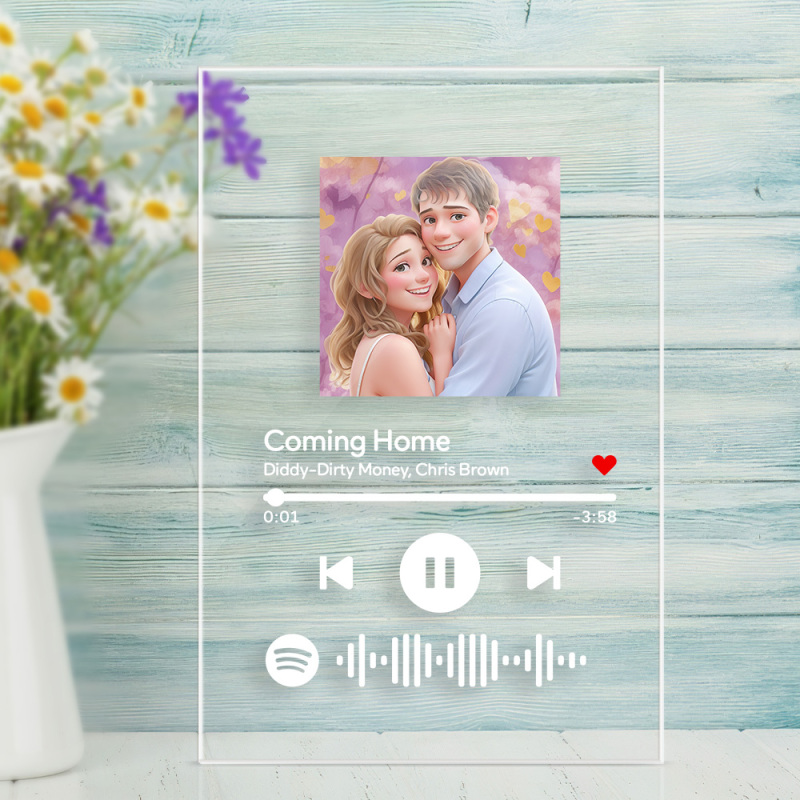 Affiche De Chanson De Dessin Animé Photo Personnalisée, Code Spotify Numérisable, Plaque Musicale En Acrylique, Veilleuse, Cadeaux Pour Elle
