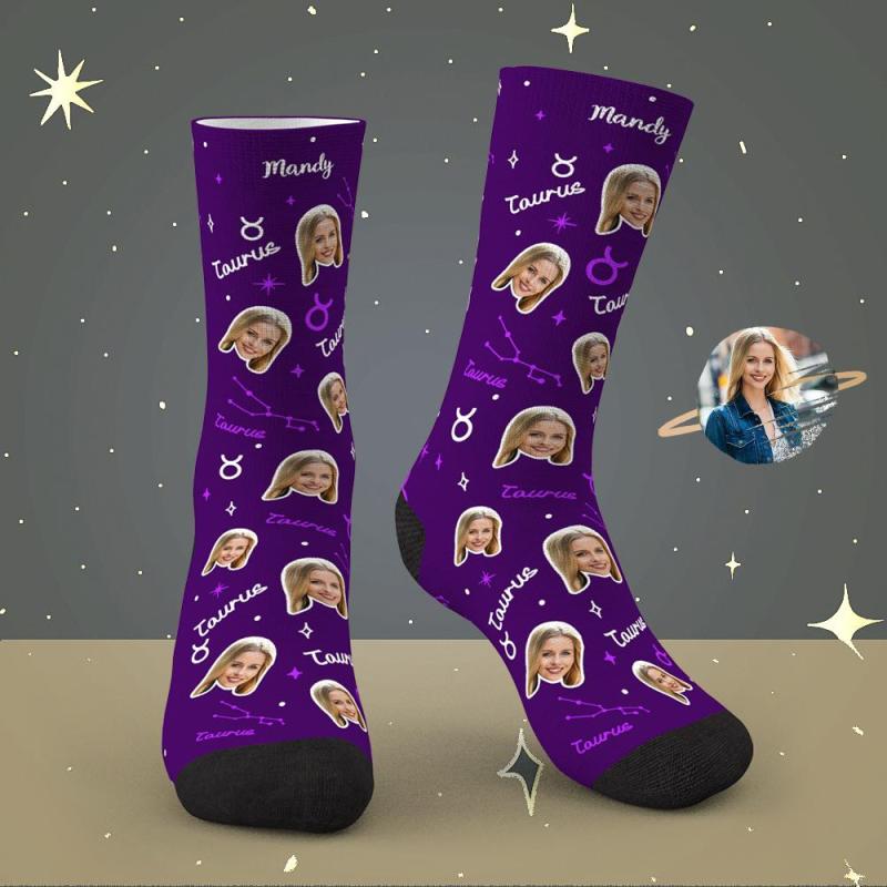 Mettez votre visage sur des chaussettes et des chaussettes personnalisées. Personnalisez vos propres chaussettes porte-bonheur constellation.