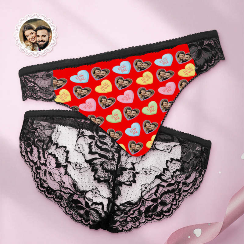 Culotte En Dentelle Personnalisée Pour Femmes, Culotte Sexy Avec Visage En Forme De C?ur, Cadeau Doux