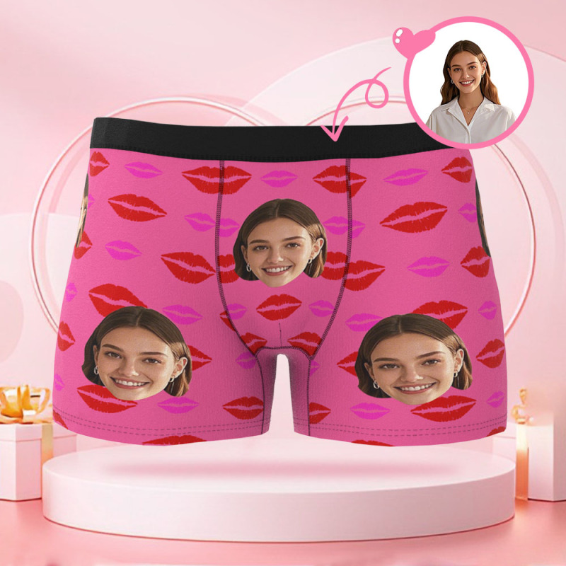 Boxer Personnalisé Pour Hommes Avec Photo De Visage Avatar Avec Motif Imprimé Lèvres, Boxer Unique, Cadeau De Saint-valentin Pour Petit Ami