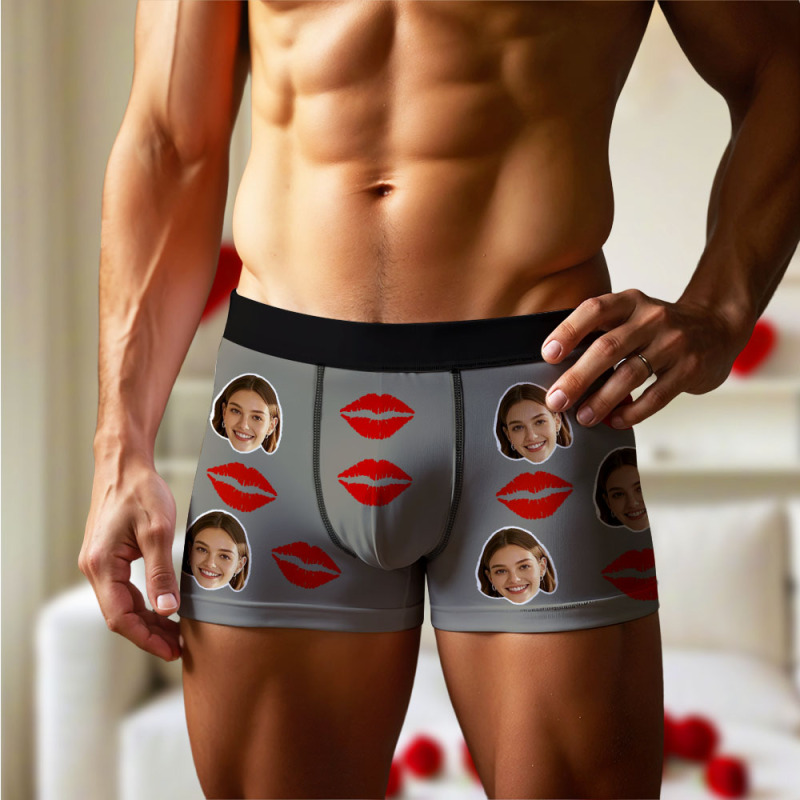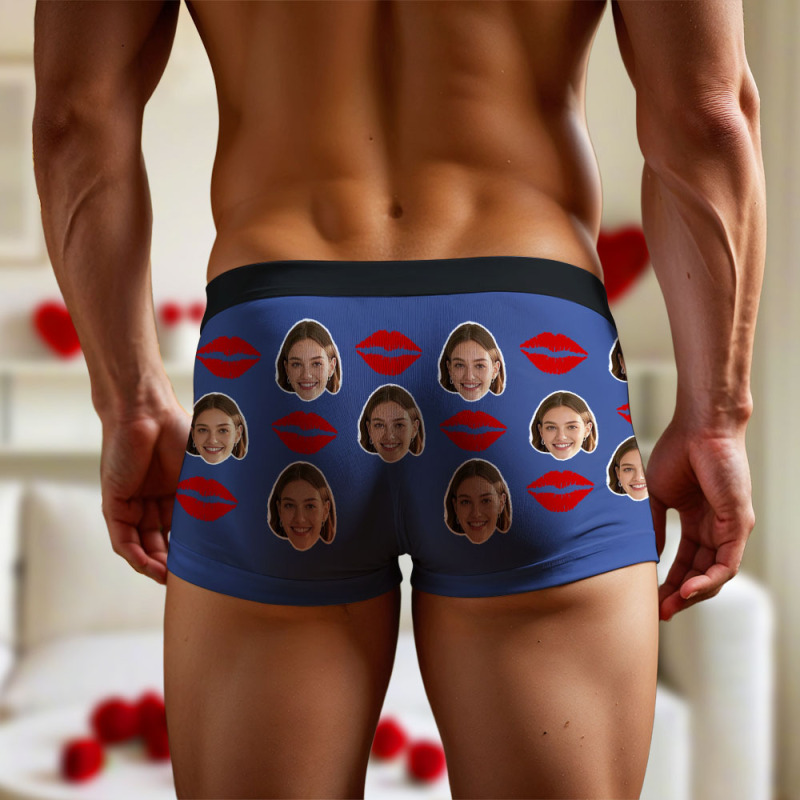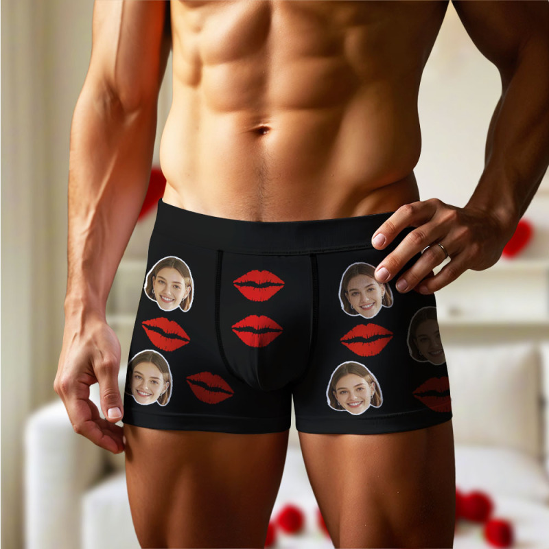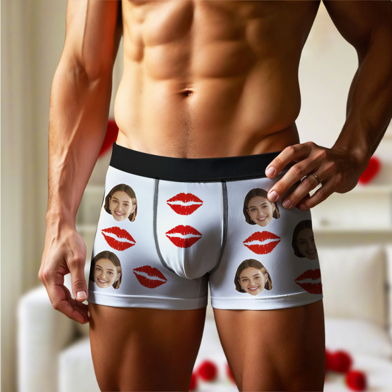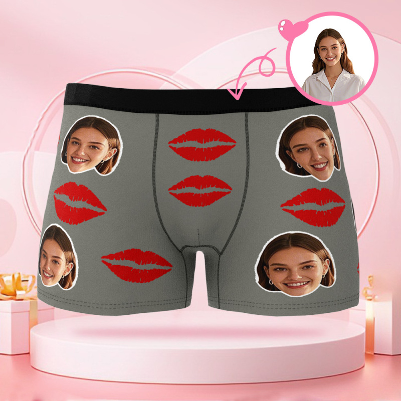 Boxer Personnalisé Pour Hommes Avec Photo De Visage, Slip Avec Motif Imprimé De Lèvres, Slip Pour Petit Ami, Cadeau De Saint-valentin