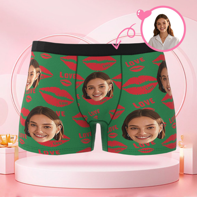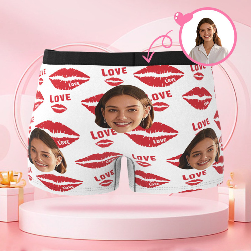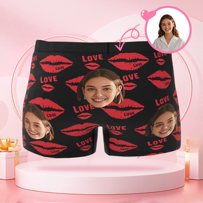 Boxer Personnalisé Pour Hommes Avec Photo De Visage, Avec Rouge À Lèvres Imprimé Kiss Mark, Cadeau De Saint-valentin Pour Petit Ami