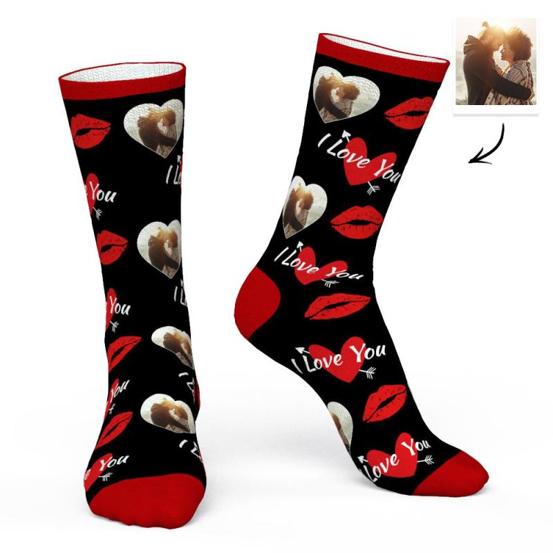 Chaussettes Photo Personnalisées Avec Visage D'amour Avec Photo En Forme De Cœur