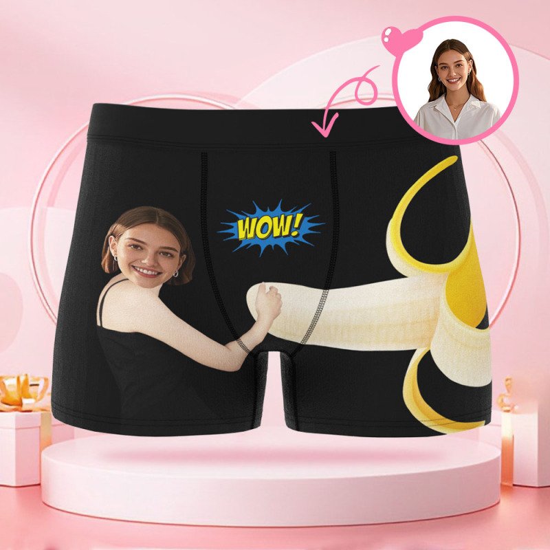 Boxer Personnalisé Pour Homme Avec Photo D'une Femme Tenant Une Banane, Visage Personnalisé, Cadeau Surprise Pour Petit Ami Le Jour De La Saint-valentin