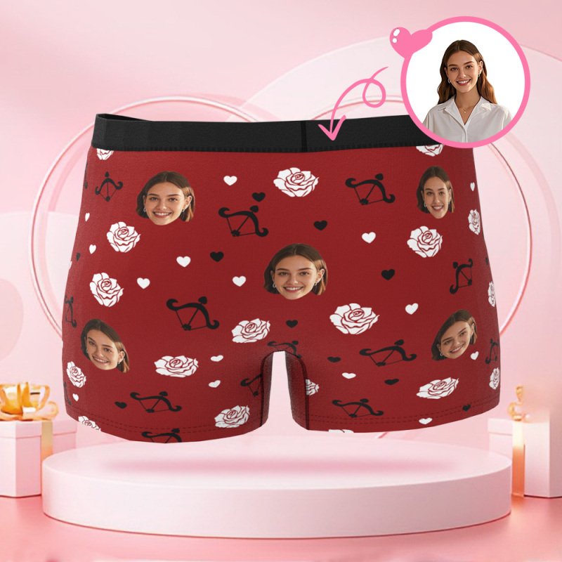Photo Personnalisée Roses Et Flèche De Cupidon Boxer Pour Hommes, Visage Personnalisé, Cadeau Surprise Pour Petit Ami Le Jour De La Saint-valentin