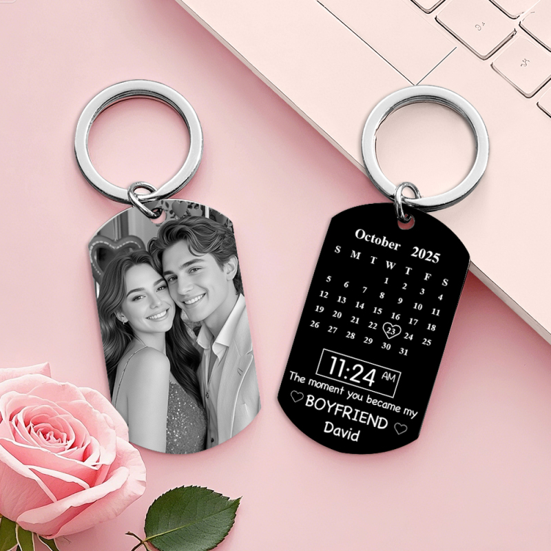 Ce produit personnalisé est le cadeau idéal pour célébrer un jour spécial. Ce porte-clés peut être personnalisé avec votre photo, votre date, votre heure et votre nom. De haute qualité, abordable et livré rapidement, il convient aux couples, aux amoureux, aux parents, à la famille et à lui/elle. C'est également le cadeau idéal pour diverses occasions comme un anniversaire, Noël, etc.