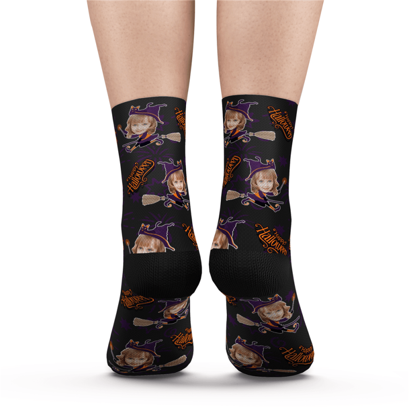 Chaussettes Personnalisées Halloween Visage Sorcière