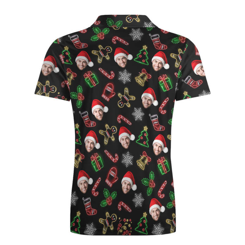Polo Néon De Noël Avec Visage Personnalisé Pour Hommes, Chemises De Golf Personnalisées À Manches Courtes, Cadeau