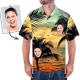 Chemise visage personnalisée pour hommes Chemise hawaïenne à manches courtes Sunset Palm