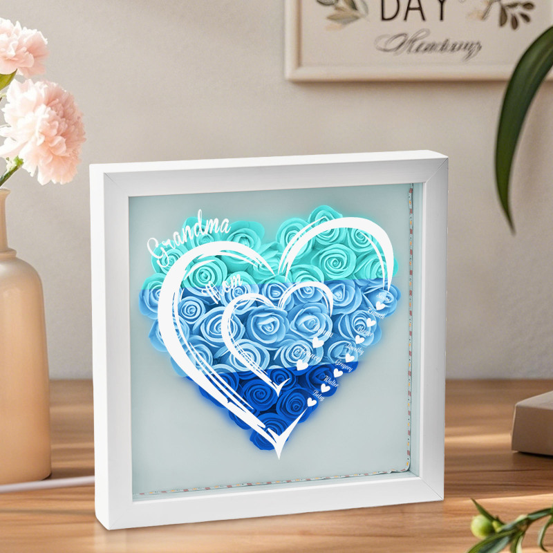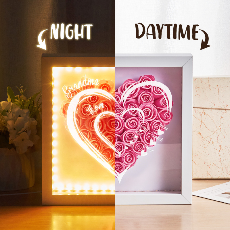 Mom & Grandma’s Love in Bloom – Personalized Flower Shadow Box with LED Light.