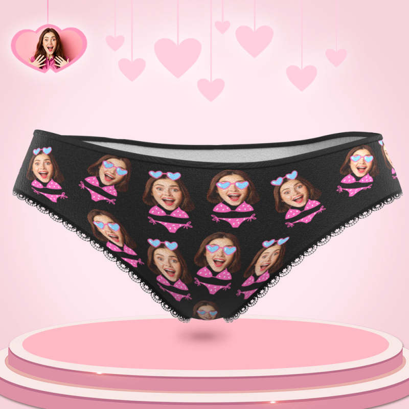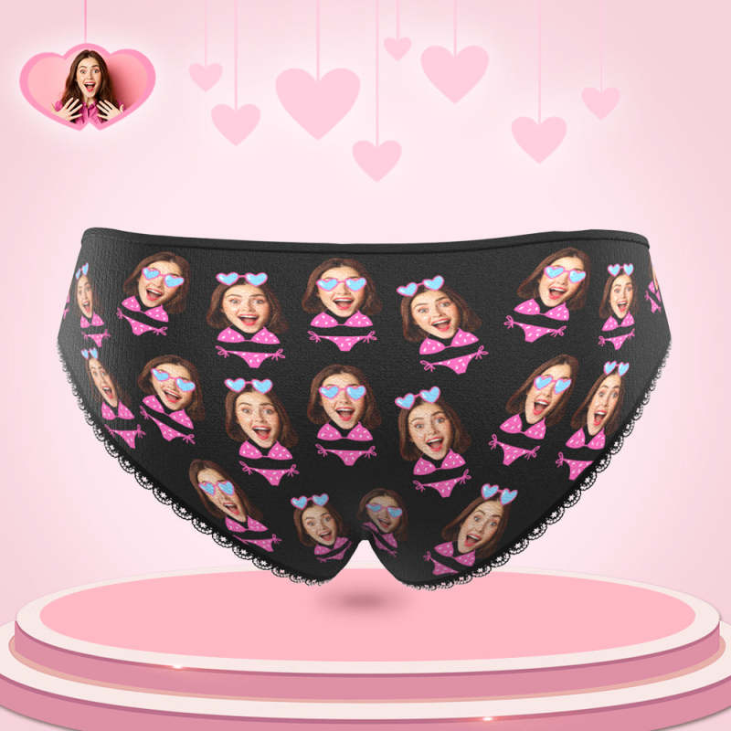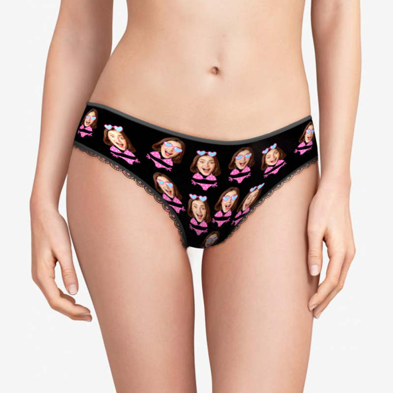 Culotte Personnalisée De Visage De Bikini Photo Personnalisée De Femmes Sous-vêtements Noirs Cadeau Drôle Pour Elle