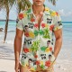 Cette chemise hawaïenne présente un imprimé, une fermeture boutonnée et des manches courtes.