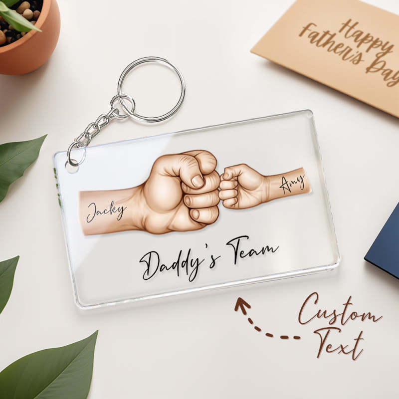Célébrez papa avec notre porte-clés personnalisé en acrylique « Équipe de papa » (poings et pattes). Ce porte-clés personnalisé, orné de poings et de pattes, ainsi que de noms, est un cadeau unique et touchant pour la fête des Pères, les anniversaires et Noël. Parfait pour le papa qui chérit son équipe, ce porte-clés symbolise le lien fort qui unit ses proches, y compris son animal de compagnie. Offrez à papa un souvenir précieux qu'il pourra emporter partout avec lui et qui lui rappellera son équipe si spéciale.