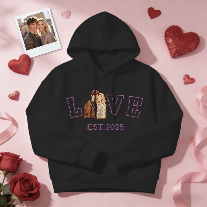 Sweat-shirt/Hoodie Personnalisé Avec Photo Broddée Pour Couple, Motif LOVE et Année De Création