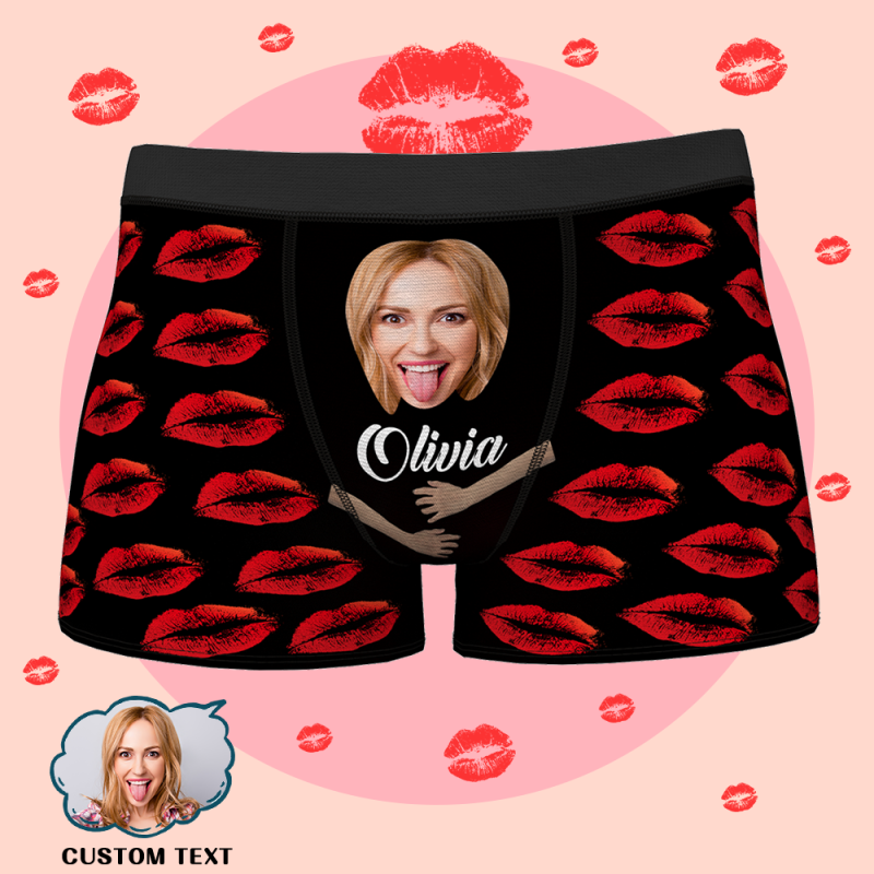 Boxer personnalisé visage et nom avec empreintes de lèvres Boxer photo personnalisé pour lui Sous-vêtement personnalisé avec visage