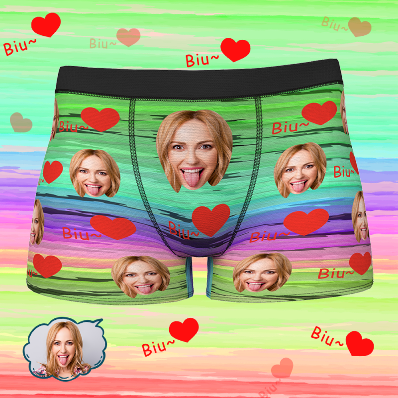 Boxer Visage Personnalisé Coloful avec Coeur Boxer Personnalisé pour lui sous-vêtement personnalisé pour homme