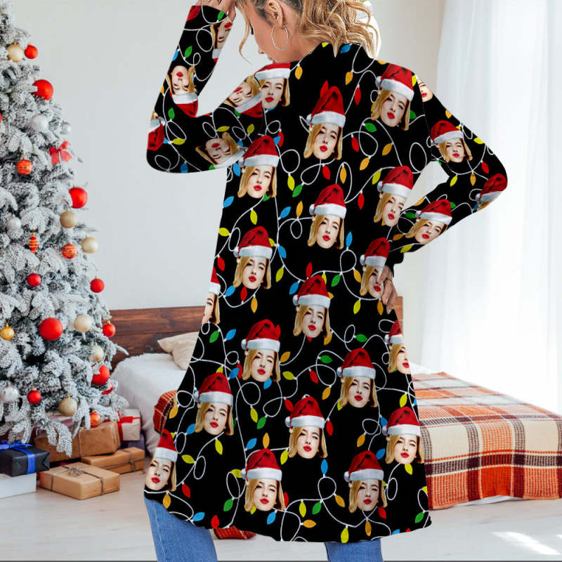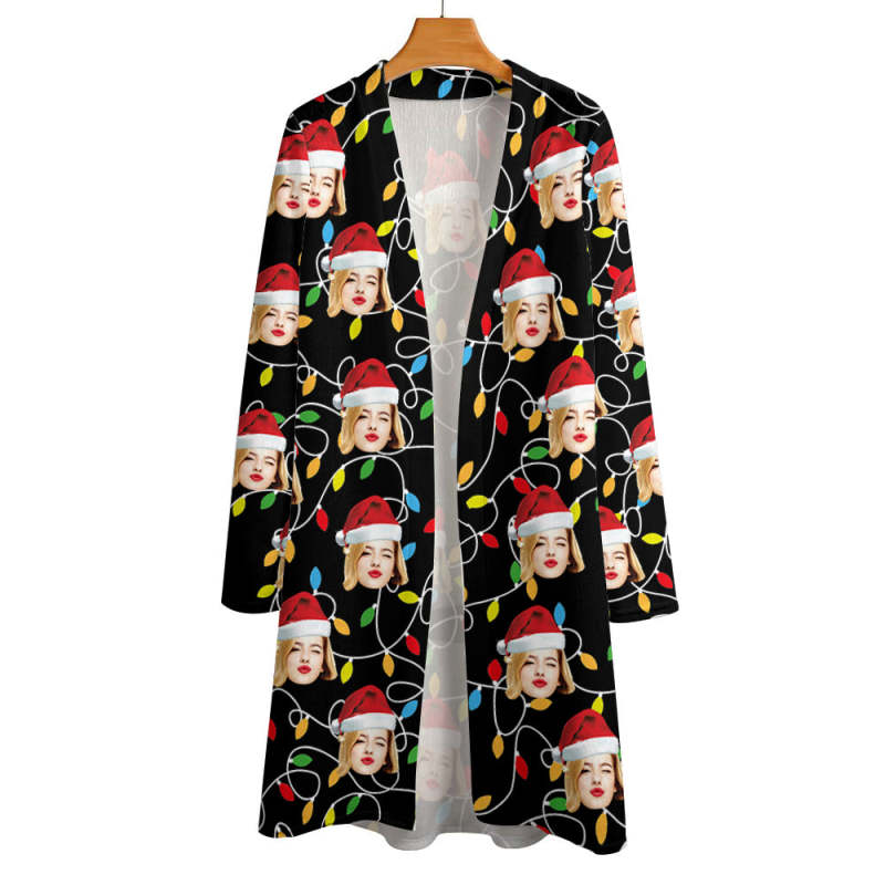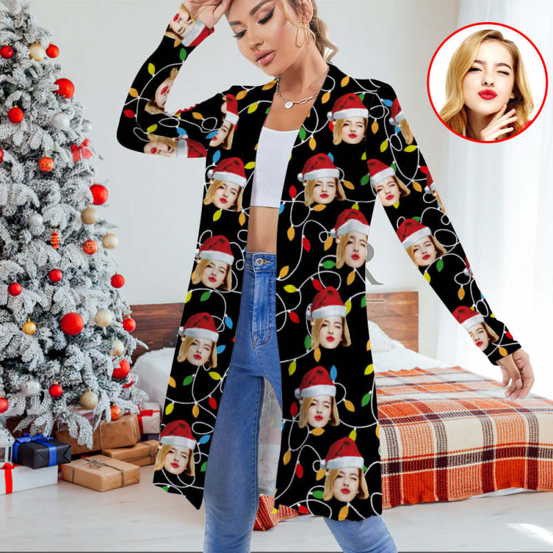 Cardigan De Noël Avec Visage Personnalisé Pour Femme, Cardigan Ouvert Sur Le Devant Pour Cadeaux De Noël