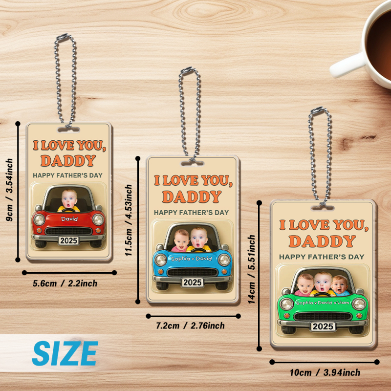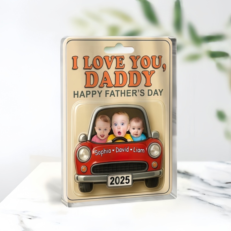 Pour la fête des Pères, surprenez-le avec un tableau de bord rempli d'amour ! Notre support de voiture personnalisé en acrylique place les enfants aux commandes, littéralement. Avec leurs adorables minois assis dans une voiture de dessin animé et un audacieux « JE T'AIME, PAPA » sur le toit, c'est la petite équipe la plus adorable dont il n'aurait jamais cru avoir besoin.