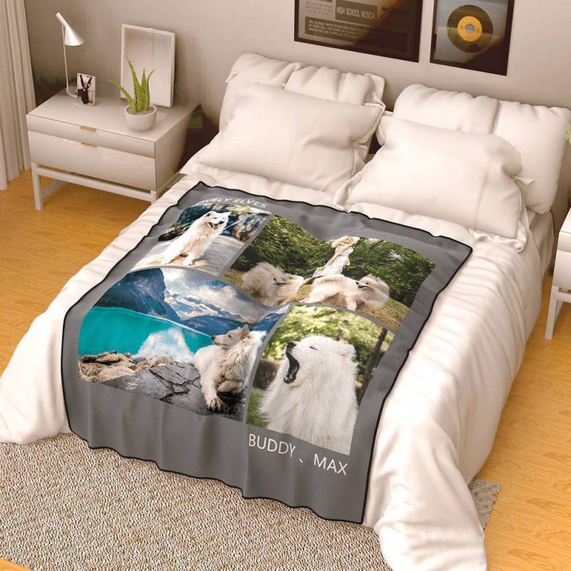 Couverture Personnalisée en Photo en Molleton avec Gravure - 4 Photos
