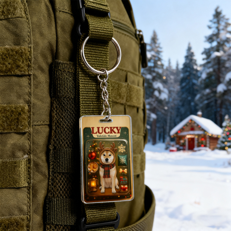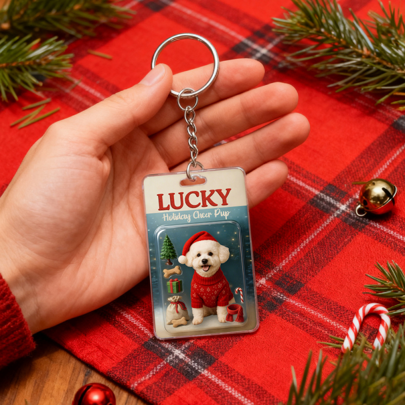 Porte-clés Personnalisé Représentant Un Chien Accroupi : Un Souvenir De Noël Touchant, Un Cadeau Unique Pour Les Amoureux Des Chiens.