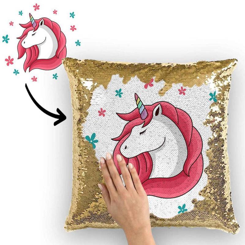 Licorne Personnalisé Famille Les Photos la Magie Oreiller de Paillettes Multicolore 40cm*40cm